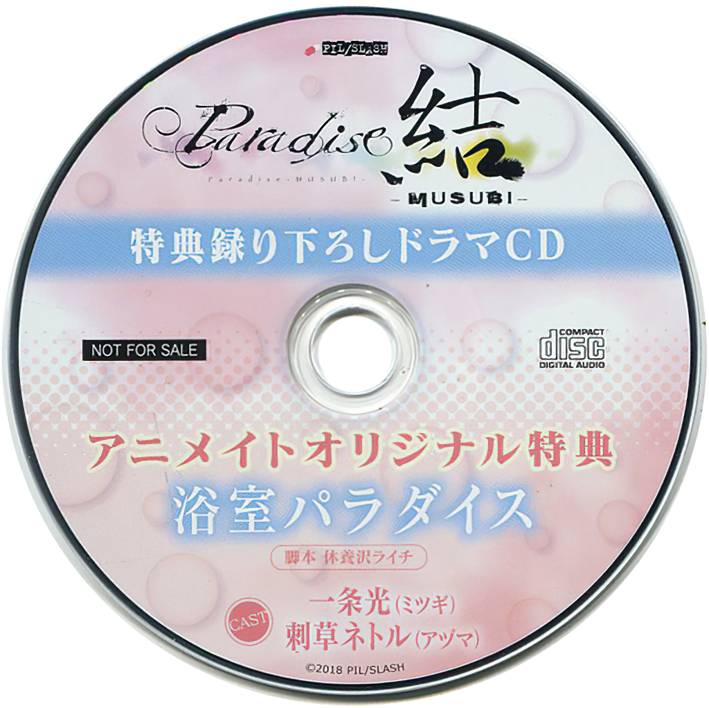 Paradise -MUSUBI- Animate Tokuten Drama CD "Yokushitsu Paradise"Paradise 結 -MUSUBI- アニメイト特典ドラマCD「浴室パラダイス」Paradise -MUSUBI- Animate Tokuten Drama CD "Yokushitsu Paradise"