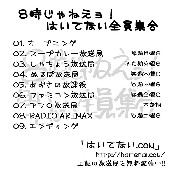 8-ji ja nee yo! Haitenai Zenin Shuugou.8時じゃねえョ!はいてない全員集合8-ji ja nee yo! Haitenai Zenin Shuugou.