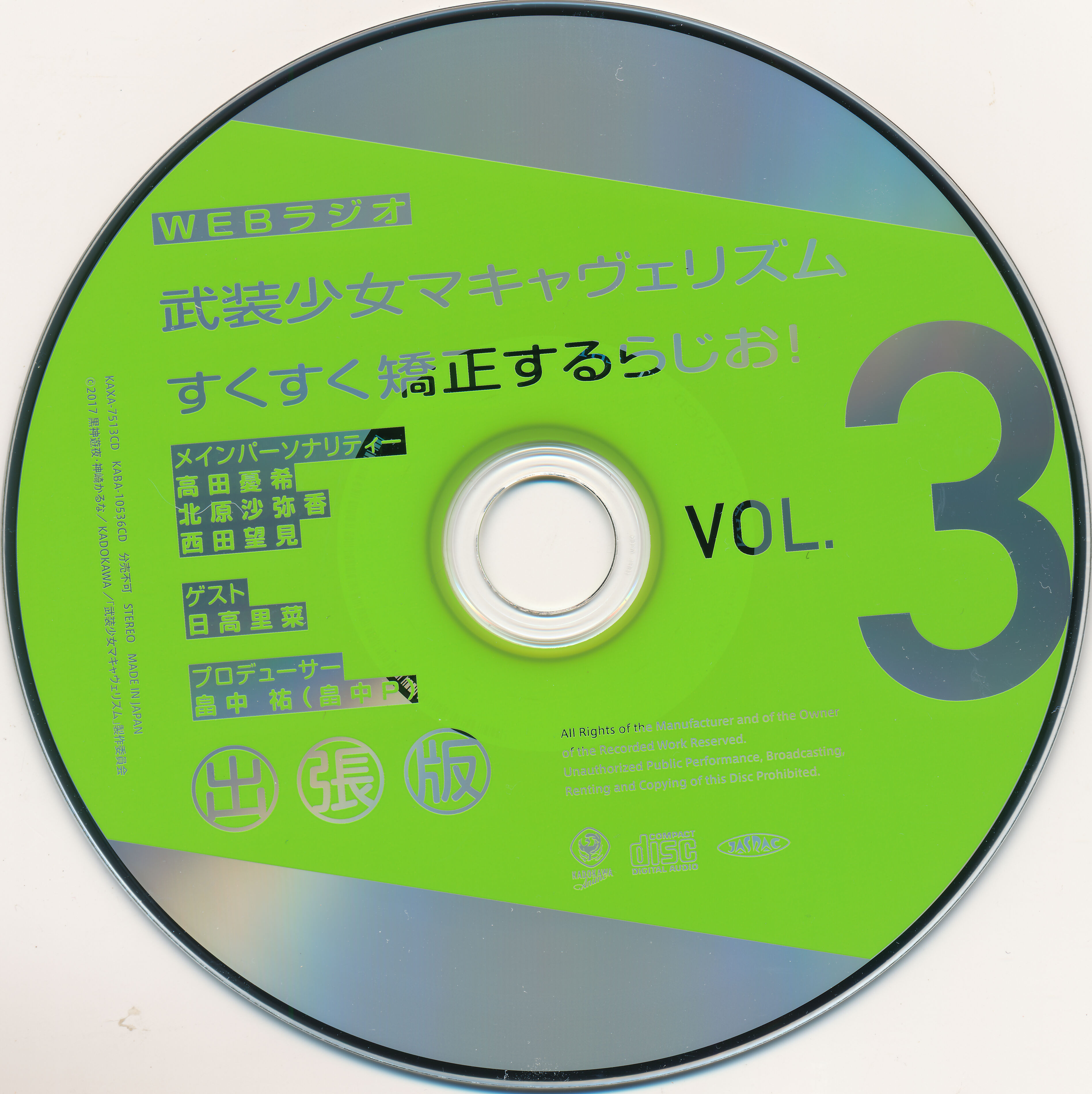 Armed Girl's Machiavellism: Sukusuku Kyouseisuru Radio! Shucchouban VOL.3WEBラジオ「武装少女マキャヴェリズム すくすく矯正するらじお!」出張版 VOL.3WEB Radio "Busou Shoujo Machiavellism: Sukusuku Kyouseisuru Radio!" Shucchouban VOL.3